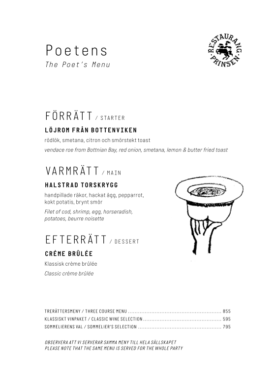 With options ranging from savory starters to delightful desserts, each visit promises to be memorable. Whether you're after a quick bite or a leisurely meal, Restaurang Prinsen is sure to impress with its quality and charm.